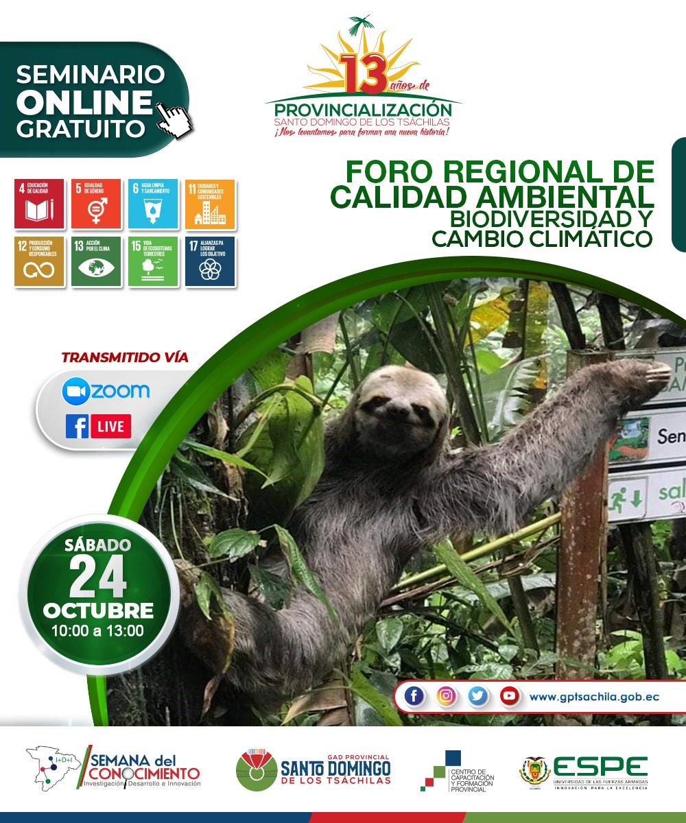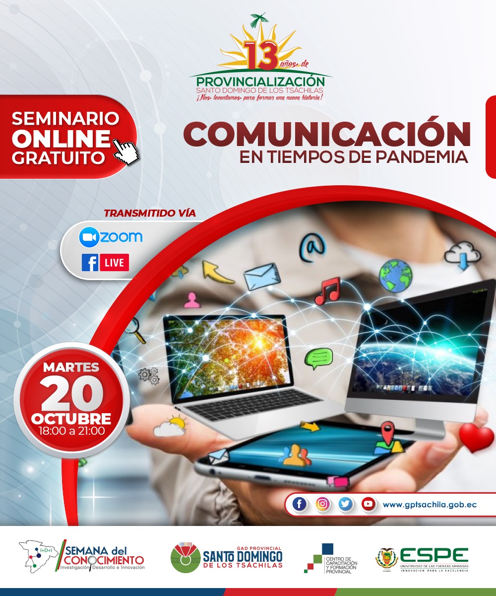 Una serie de actividades académicas en temáticas diferentes, formarán parte de la Semana del Conocimiento, a desarrollarse de forma virtual del 19 al 30 de octubre, en el marco de la celebración por los 13 años de provincialización, que ha programado la Prefectura de Santo Domingo de los Tsáchilas.
