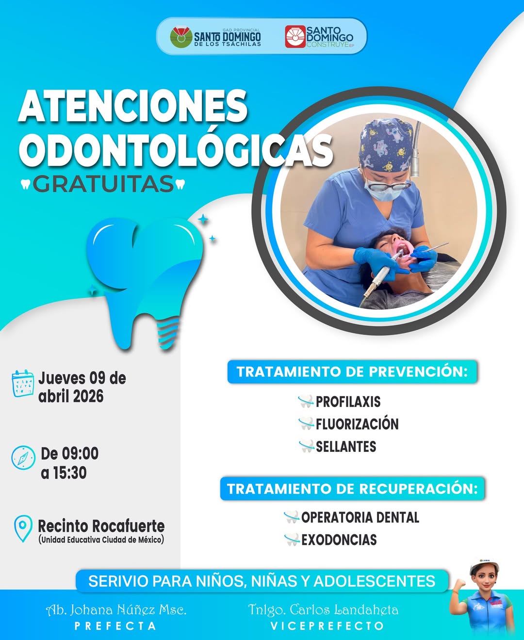 🦷Este jueves 9 de abril brindaremos Atenciones Odontológicas Gratuitas en el Recinto Rocafuerte, en la Unidad Educativa Ciudad de México 🏫📍