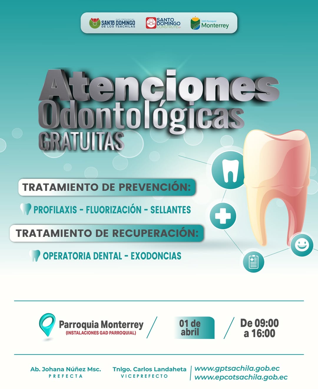 Invitamos a la comunidad de la parroquia Monterrey a ser parte de las Atenciones Odontológicas Gratuitas, donde podrán acceder a servicios de salud bucal sin costo.