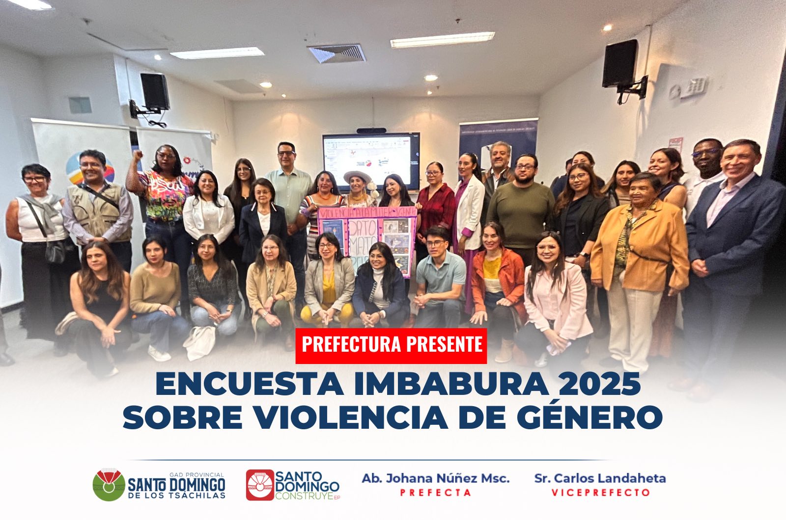 En representación del prefecto (s) Carlos Landaheta, Ruth Arteaga, abogada del proyecto Mujeres Emprendedoras, Libres de Violencia, participó en la socialización de los resultados de la Encuesta Provincial Basada en Género – Imbabura 2025.