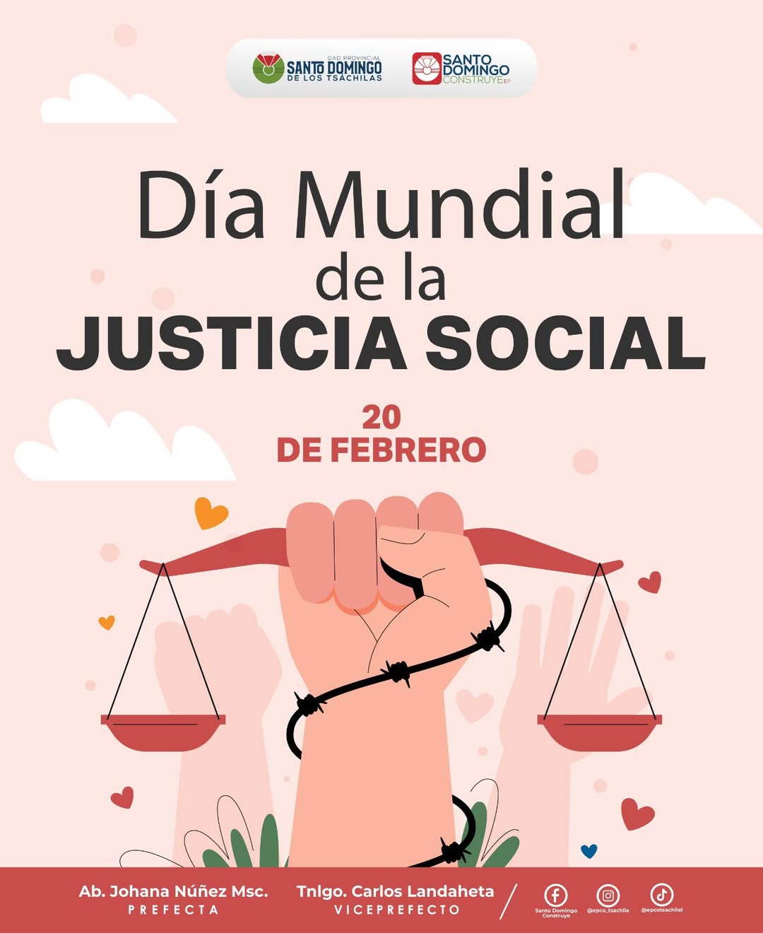 Hoy, en el Día Mundial de la Justicia Social, recordamos que un mejor Ecuador se construye con igualdad, oportunidades y solidaridad para todos. 🤝🇪🇨✨