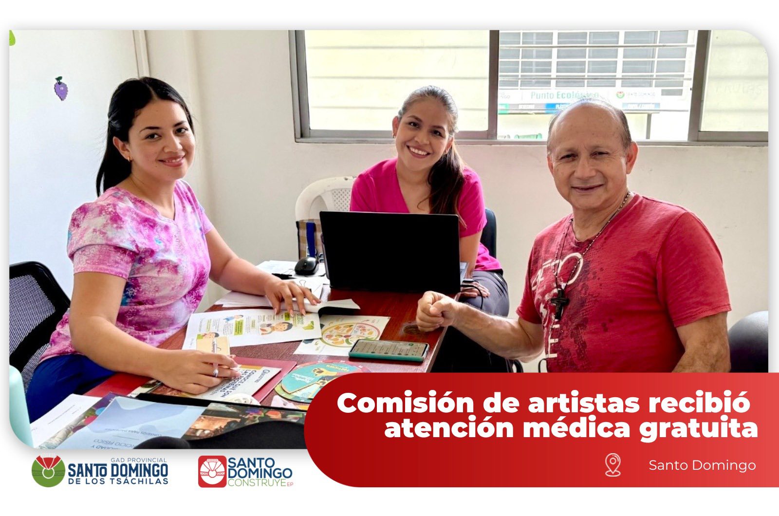 La brigada médica realizada por EPCO Tsáchila recibió a la comisión de artistas, brindando atenciones integrales a la comunidad artística mediante los servicios de medicina general, odontología, rehabilitación física, psicología, enfermería, asesoría legal y nutrición, acercando salud, orientación y bienestar a quienes forman parte del sector cultural.