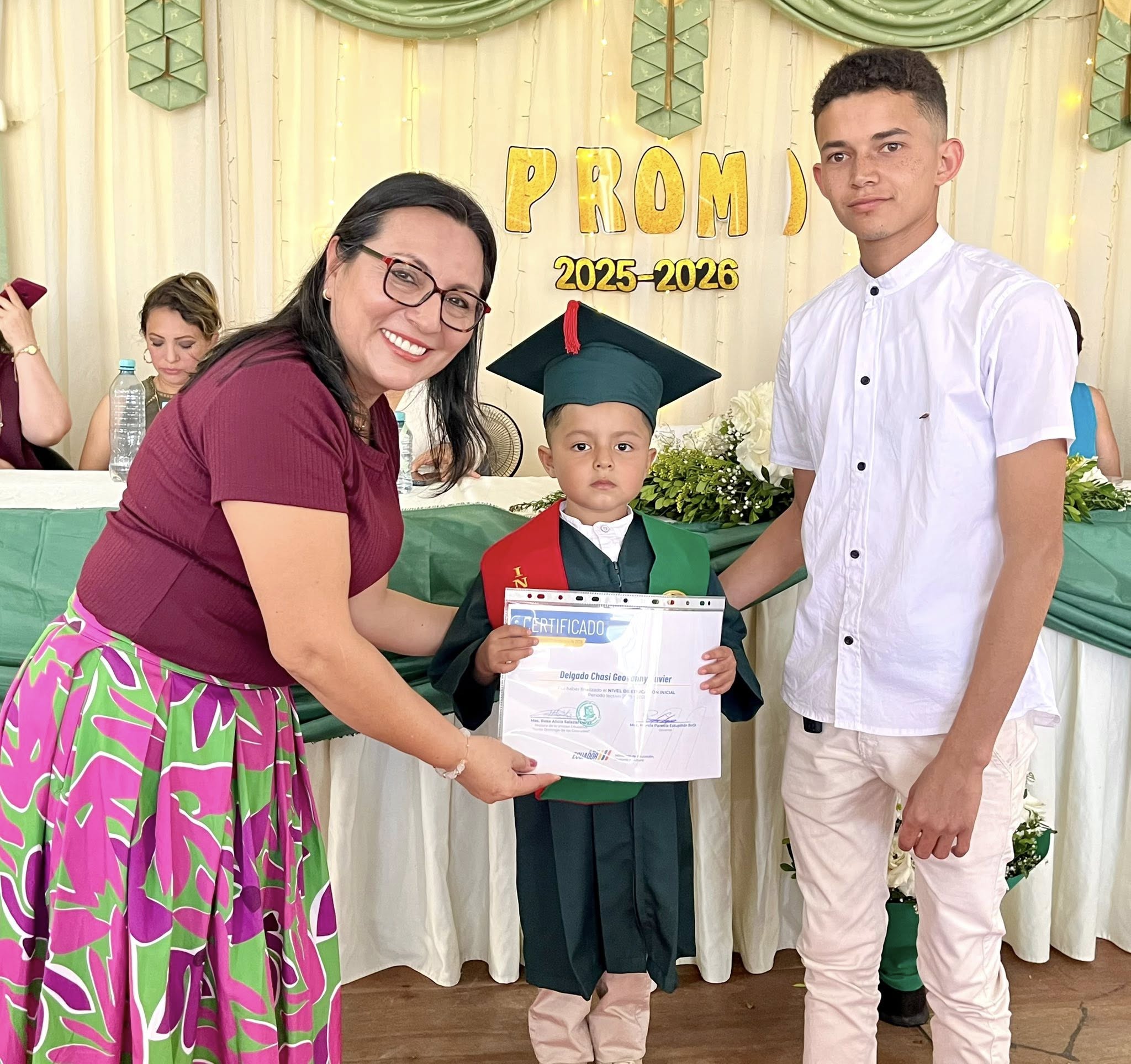 La Subgerente de Servicios Sociales de la EPCO Tsáchila, Psi. Rosa Inés Carrión, estuvo presente en la culminación del año lectivo 2025 del grupo A de inicial, jornada vespertina, de la Unidad Educativa Santo Domingo.