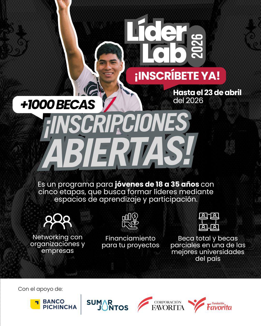 Cierra la convocatoria este 23 de abril para el programa más grande de formación juvenil: LÍDER LAB 🚀