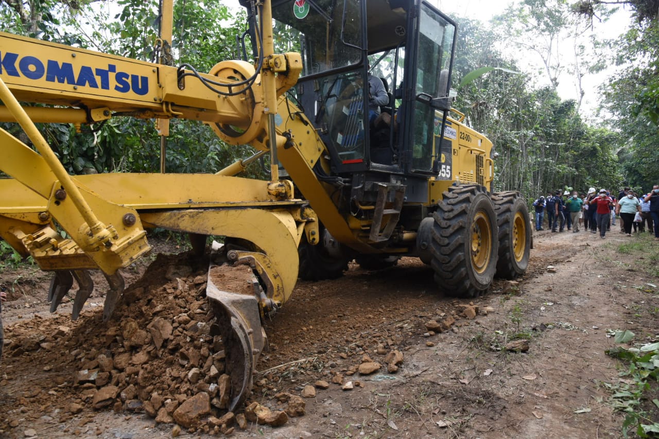 Precisamente cumpliendo con el nuevo cronograma de intervenciones, la Prefectura realiza el mejoramiento de la carretera con material sub base y cascajo, en una extensión de 3.6 kilómetros, con la ayuda de una motoniveladora, dos volquetas, rodillo y tanquero.