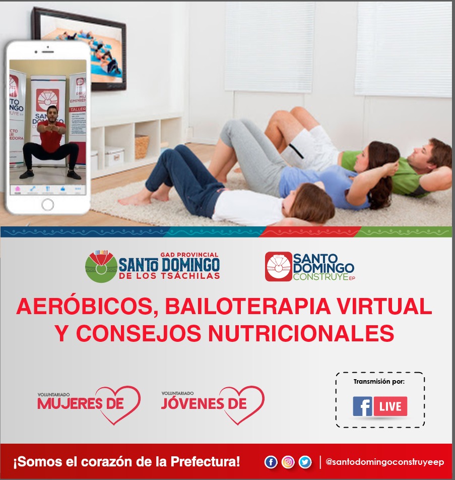 Brindar la facilidad de recibir una rutina saludable de ejercicios, bailoterapia y consejos nutricionales para poner en práctica desde la comodidad de los hogares es la nueva propuesta del Área Social de la Prefectura de Santo Domingo de los Tsáchilas, que se imparte de manera virtual para beneficio de toda la ciudadanía.